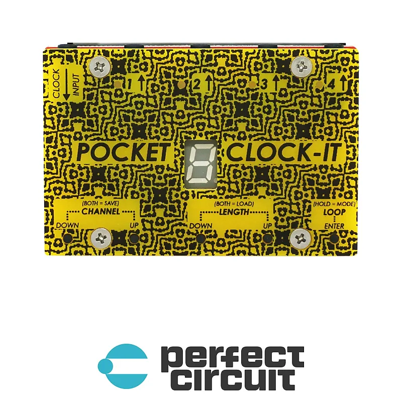 POCKET CLOCK-IT - это USB-устройство, четырехканальный генераторный секвенсор с гейтами, предназначенный для использования с аналоговыми синтезаторами и модулями Eurorack.POCKET CLOCK-IT создает случайные ритмы, которые можно зациклить, сохранить и воспроизвести.Длину шага для каждой последовательности можно контролировать отдельно или глобально.Помимо секвенсора, POCKET CLOCK-IT также является четырехканальным программируемым делителем тактового сигнала.POCKET CLOCK-IT может работать от любого напряжения выше 1/2 вольта .Если вам нравится работать с POCKET CLOCK-IT, пресеты можно сохранить в любой из 8 встроенных ячеек памяти.Эти пресеты можно вызвать на гриде с последующим приходом тактового импульса.Режим делителя тактового сигнала и режим случайного воспроизведения имеют отдельные банки памяти.Вы можете использовать POCKET CLOCK-IT для секвенирования множества устройств или как утилиту для объединения всех ваших устройств.