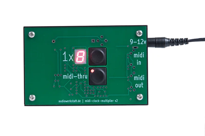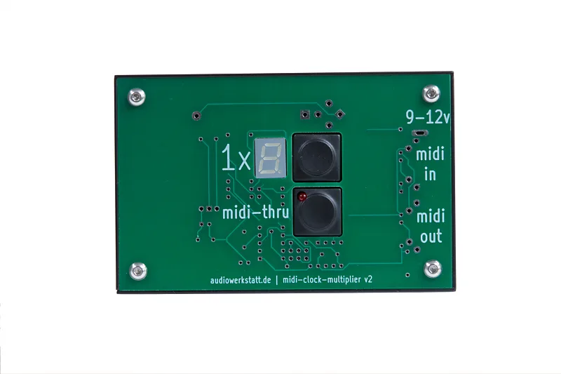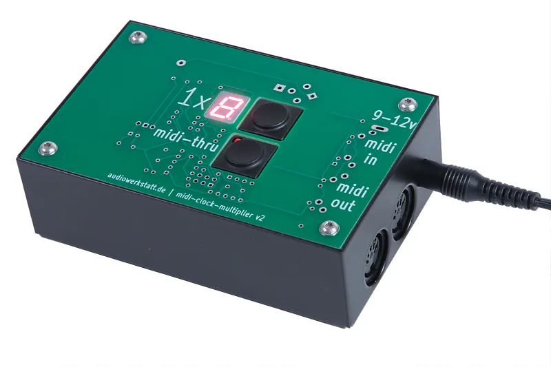 audiowerkstatt midi-clock-multiplier v2 умножает MIDI-часовой сигнал MIDI-мастера, в результате чего MIDI-слейв работает соответстенно быстрее.Множители: 1x, 2x, 3x,..., 8x, 9x.