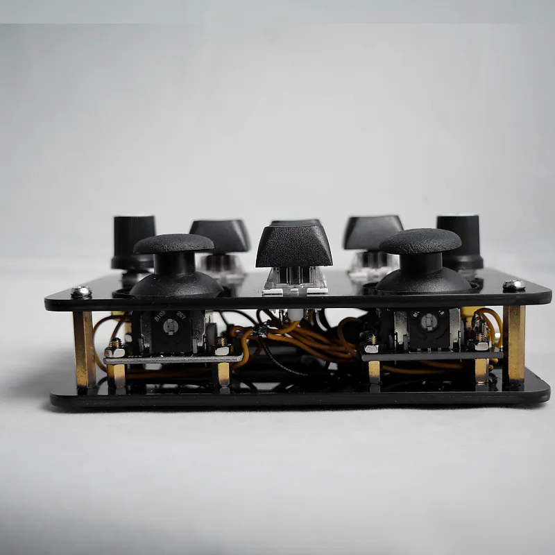 Он имеет 2 потенциометра, 2 джойстика , а также 7 кнопок .