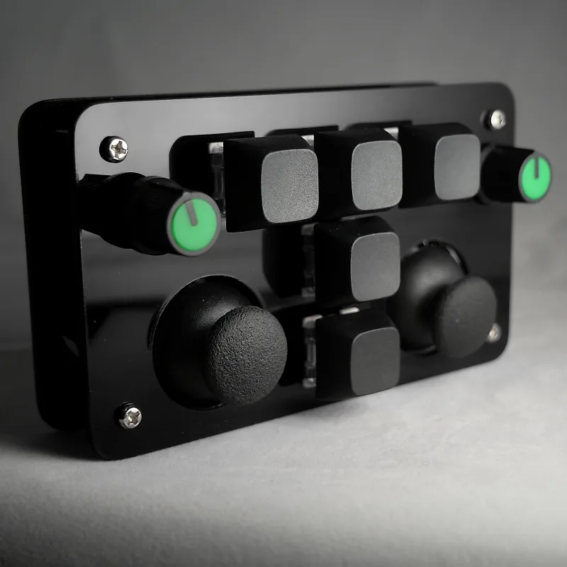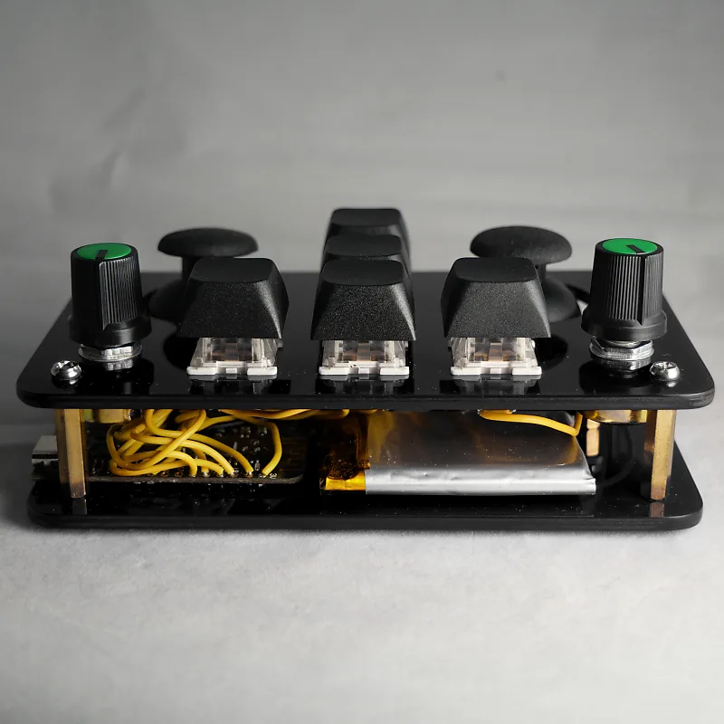 Он имеет 2 потенциометра, 2 джойстика , а также 7 кнопок .