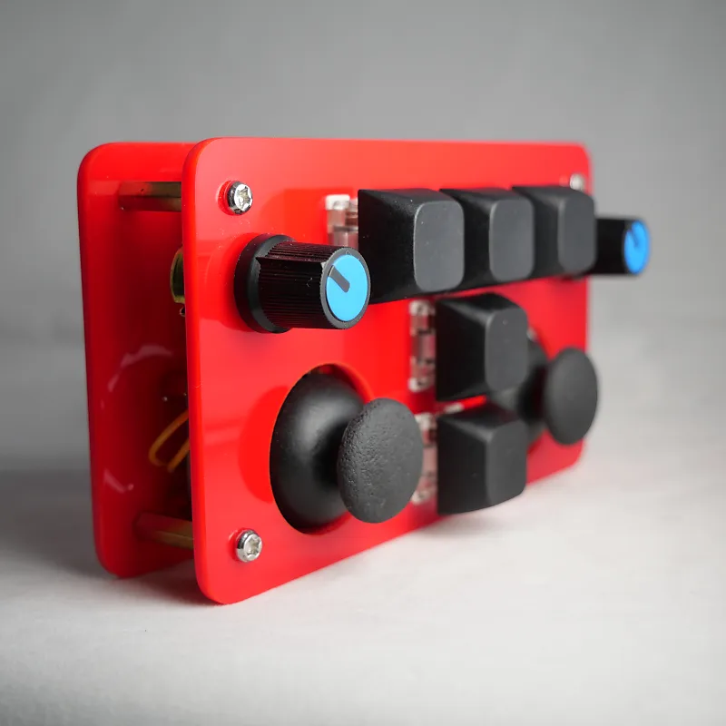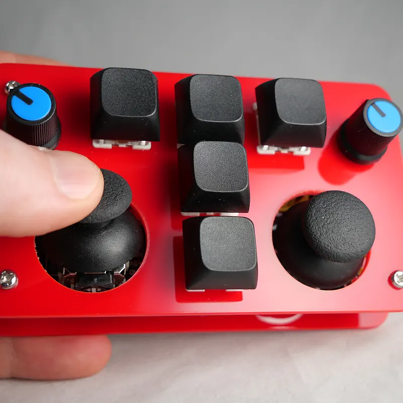 Он имеет 2 потенциометра, 2 джойстика , а также 7 кнопок .