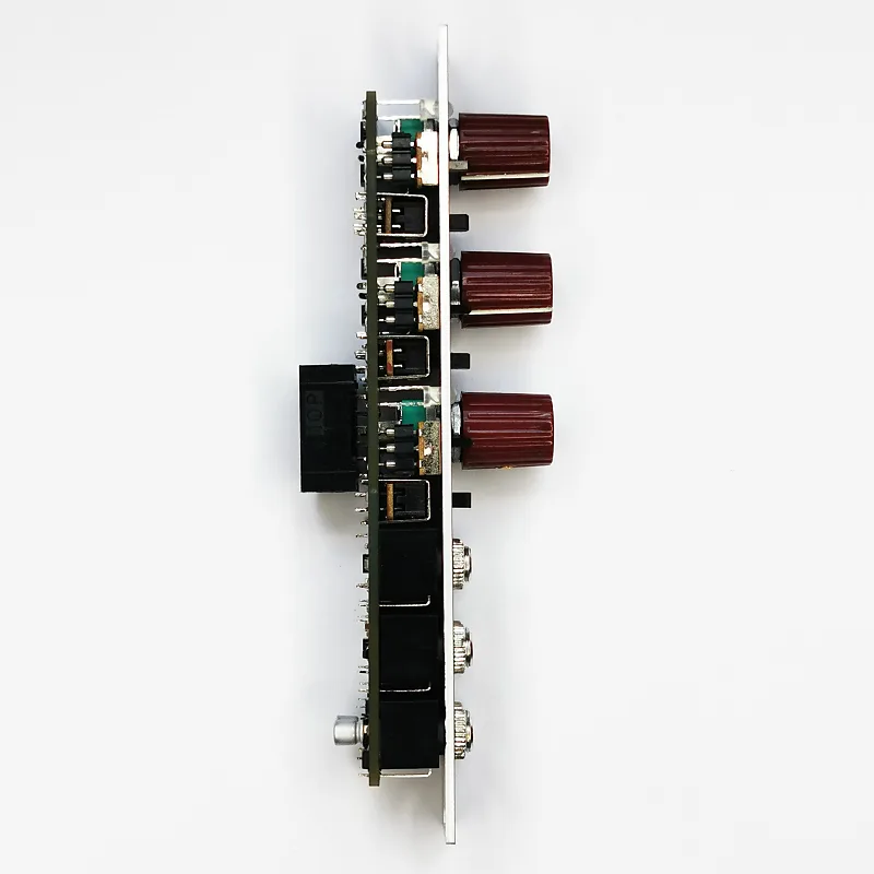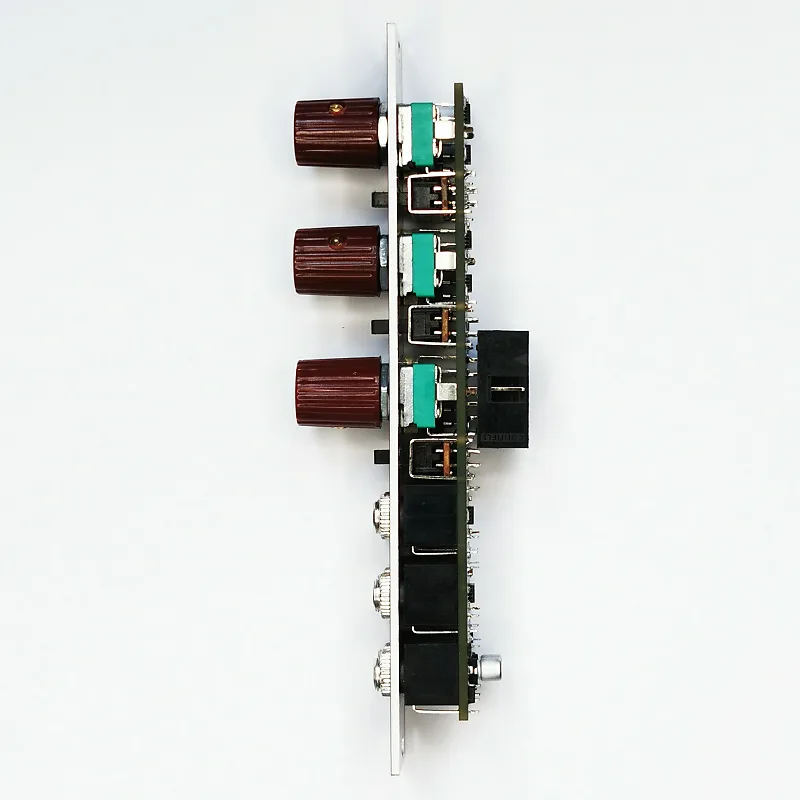 Wildsync VP-1 - это универсальный модуль обработки сигналов для систем модульных синтезаторов.Он предлагает три независимых канала для ослабления, инверсии, усиления и смешивания сигналов.Каждый канал может работать как с внешними сигналами, так и с внутренними опорными напряжениями, что делает его мощным инструментом для модуляции и управления в любой системе.Модуль оснащен биполярными светодиодами для визуализации полярности и уровня выходного сигнала на каждом канале.