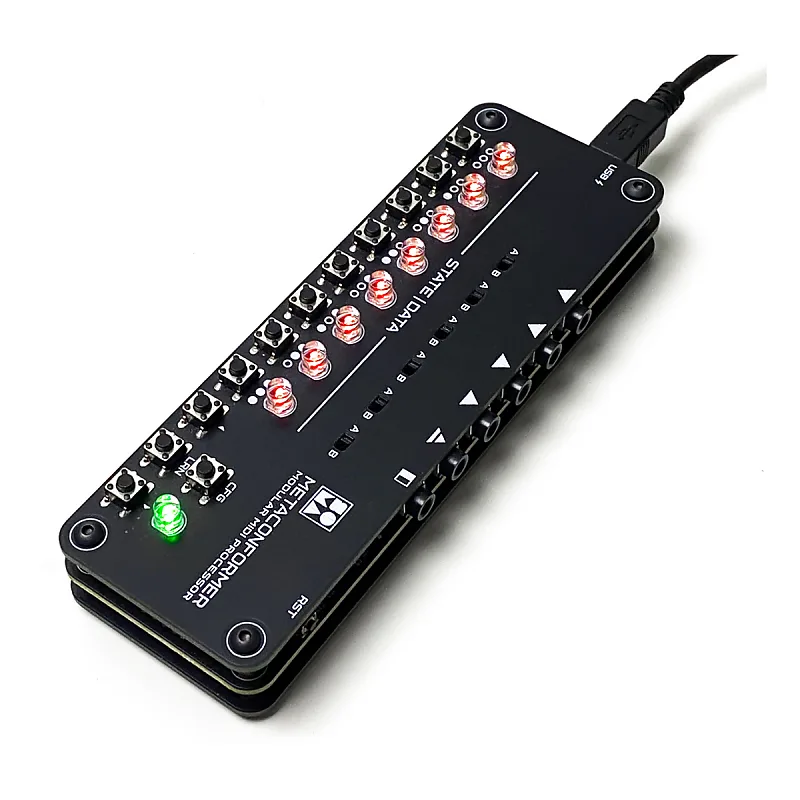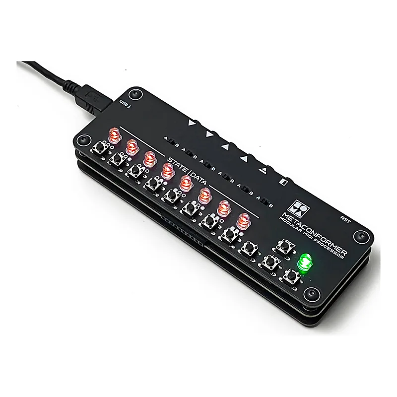 METACONFORMER имеет 2 независимых MIDI-входа и 4 MIDI-выхода.Один из выходов можно настроить как источник синхросигнала.