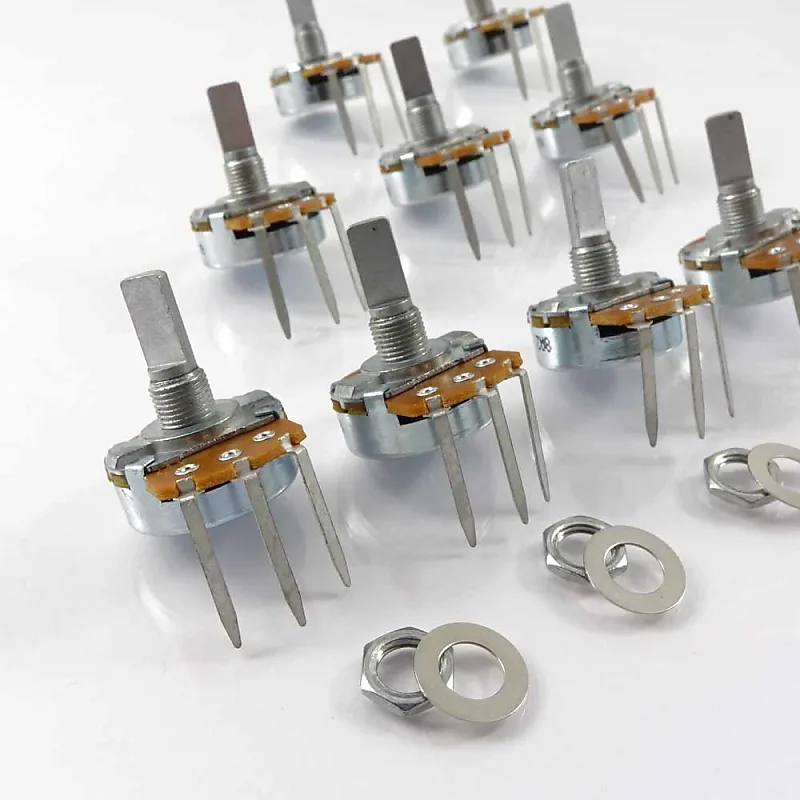 Потенциометры, которые устанавливались в Prophet 5 и также в Prophet 10, имеют значительный недостаток.Этот недостаток заключается в том, что ось была изготовлена из пластика.Эта пластиковая ось легко ломается, и сегодня уже невозможно получить оригинальные запасные части.Потенциометр с металлической осью.