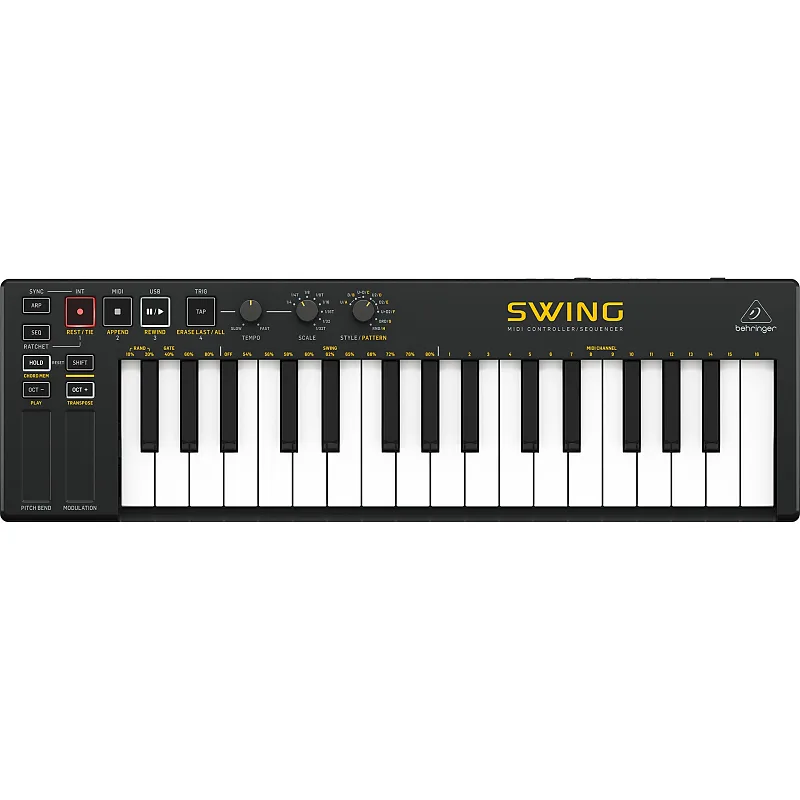 Behringer SWING дает полный контроль над любым синтезатором или виртуальным инструментом в вашей DAW через USB или MIDI.Он оснащен 64-шаговым секвенсором с 8-нотной полифонической последовательностью, 32 компактными клавишами, а также сенсорными полосами для управления питчем и модуляцией, что предоставляет безграничные возможности для самовыражения в компактном и портативном формате.
