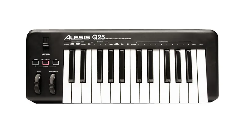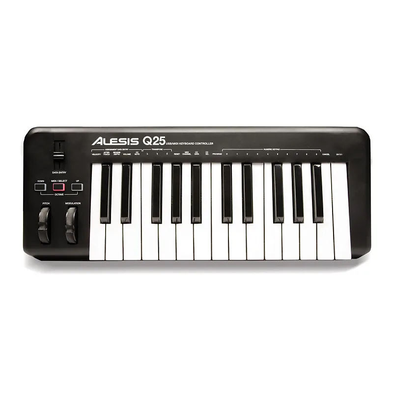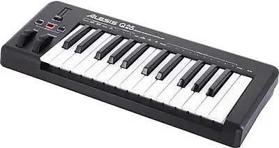 Alesis Q25 - это USB/MIDI контроллер с чувствительной к динамике клавиатурой, компактный и универсальный, который можно использовать как на рабочем месте для компьютерного музыкального продакшена, так и в студии звукозаписи или на сцене благодаря наличию порта MIDI Out, позволяющего интегрировать внешние аппаратные MIDI-инструменты.Q25 действительно является решением plug 'n' play как по форме, так и по практическому использованию: подключите USB-кабель к вашему компьютеру Mac или PC и играйте на любимых виртуальных инструментах.Питание поступает напрямую через USB-порт, и установка драйверов для работы клавиатуры не требуется.Q25 также оснащена колесиками для управления pitch bend и модуляцией, фейдером для отправки сообщений MIDI CC и подсвечиваемыми клавишами up и down для выбора октав.Кроме того, вы сможете отправлять сообщения MIDI Program Change для быстрой смены патча или пресета.инструмент, на котором вы играете.Несмотря на компактные размеры и простую компоновку, Q25 предлагает множество функций MIDI-программирования, доступных с помощью комбинаций клавиш, что оценят опытные пользователи, ищущие компактное, легкое и переносное решение.В комплекте с Q25 поставляется программное обеспечение Ableton Live Lite Alesis Edition, позволяющее играть вживую и записывать ваши MIDI-перформансы.Благодаря физическому MIDI Out, Q25 также работает как MIDI-интерфейс, позволяя управлять внешними аппаратными инструментами, присутствующими в вашем оборудовании.