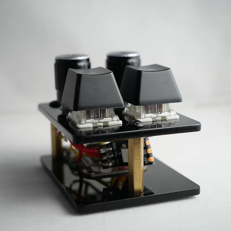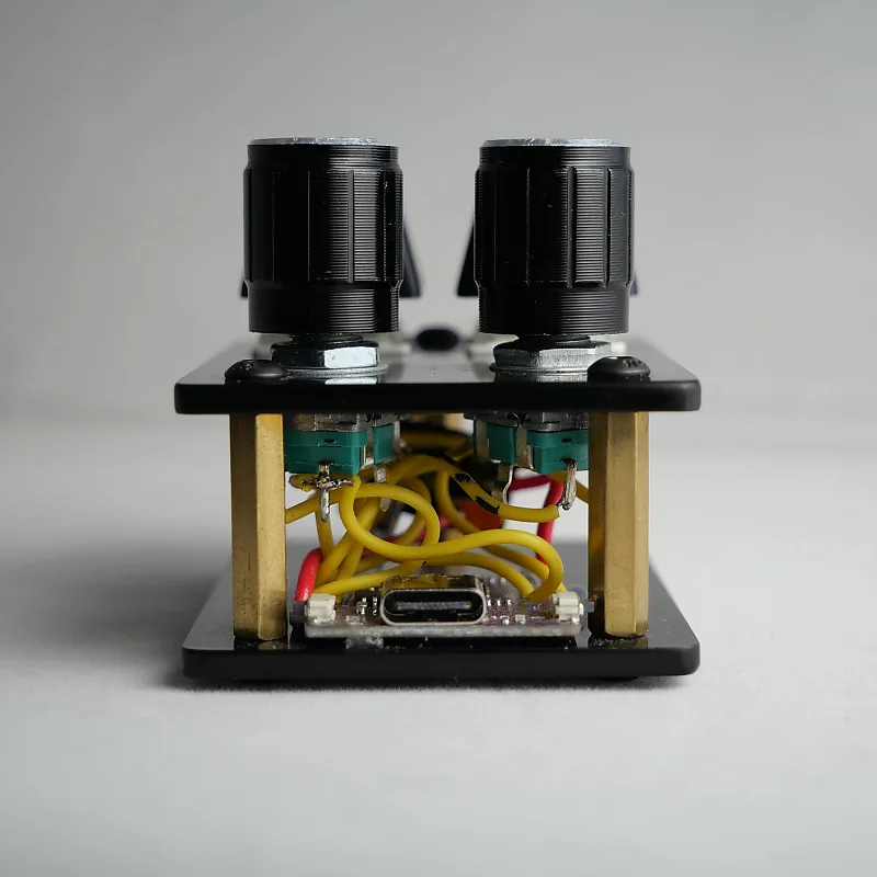 madMidiMini имеет 4 кнопки для нот , 2 энкодера CC и 2 светодиода.