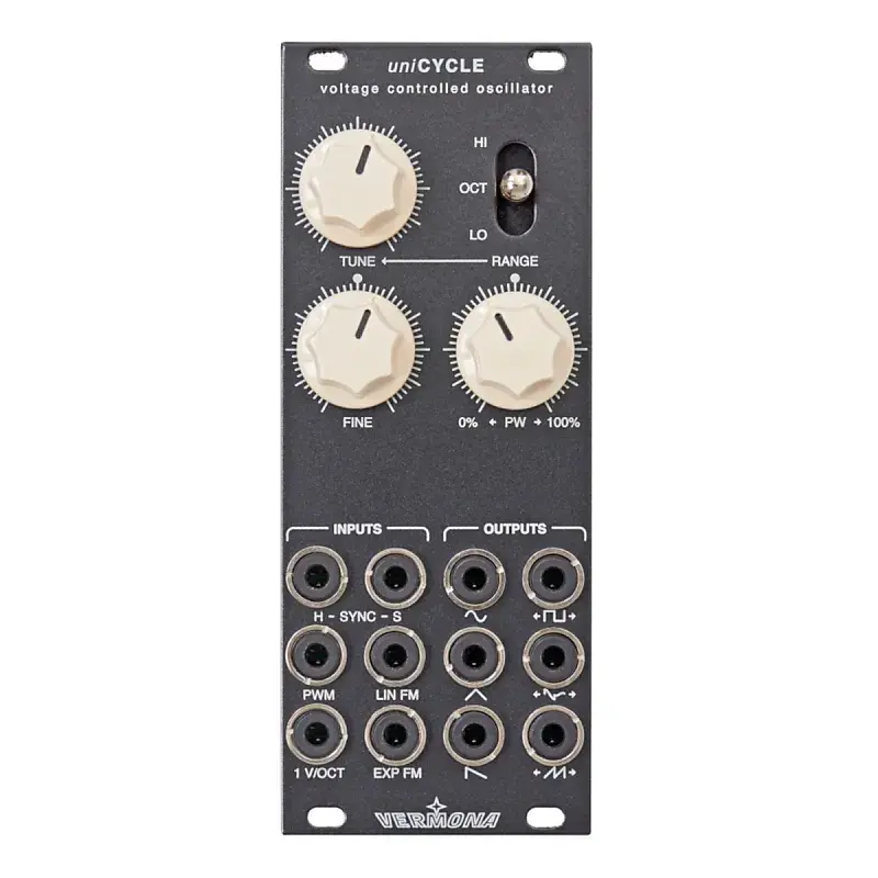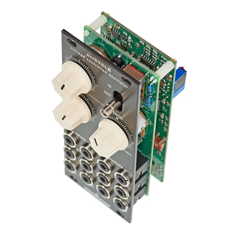 UniCycle - это компактный прецизионный осциллятор с выдающимися звуковыми характеристиками.Модуль генерирует шесть форм волн.Некоторые из них довольно необычные.Линейная и экспоненциальная FM, ШИМ, а также коннекторы жесткой и мягкой синхронизации позволяют музыкантам влиять на ВКО различными способами.Для установки высоты тона предусмотрены гибко используемые потенциометры грубой и точной настройки с широким нулевым диапазоном.В использовании UniCycle блистает насыщенным, многогранным звучанием.Точность слежения за высотой тона отличная.