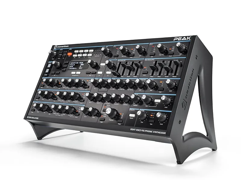 Стэнд для Novation Peak Novation Peak - это восьмиголосный полифонический настольный синтезатор с тремя сверхсовременными осцилляторами Oxford для каждого голоса.Три новых осциллятора Oxford дают звучание, сравнимое с аналоговыми осцилляторами, так как это осцилляторы NCO с чрезвычайно высоким разрешением, обладающие всей гибкостью цифровой области и включающие 17 таблиц волн .Кроме того, они могут использоваться в качестве источника линейной FM, используя NCO с аналоговым звуком или цифровые таблицы волн.