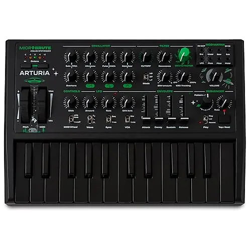 MicroBrute UFO от Arturia - это монофонический синтезатор с 25-клавишным мини-клавиатурным блоком и полностью аналоговым звуковым трактом, обеспечивающий чистую аналоговую мощь с внеземной изюминкой.Он имеет компактный дизайн и многофункциональный аналоговый осциллятор с настраиваемыми формами волн.Один аналоговый осциллятор MicroBrute способен одновременно генерировать пилообразные, квадратные и треугольные формы волн, позволяя смешивать их для создания сложных звуковых форм.Легендарный фильтр Steiner-Parker придает тембру характер, а встроенный 64-шаговый секвенсор позволяет вводить ноты по одной для создания ритмических паттернов.