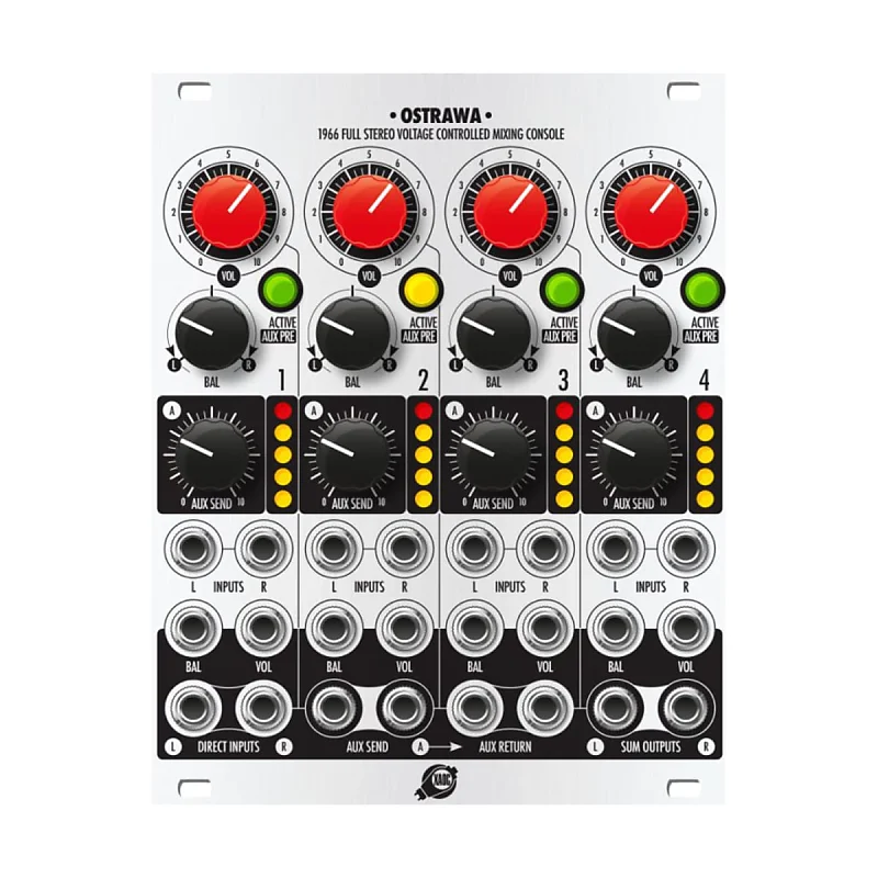 Ostrawa [ɔs’trava] - это полностью стереофонический четырехканальный микшер с управлением по напряжению, оснащенный стерео-шиной микширования, одним стерео вспомогательным выходом на канал с стерео возвратами, бесшумным отключением звука, индивидуальными уровнями индикаторов и сверхчистым DC-связанным сигналом, спроектированным с использованием высококачественных VCA и операционных усилителей.Мы тщательно настроили отклик управления напряжением Ostrawa, чтобы достичь того, что, по нашему мнению, является оптимальным пользовательским опытом, присущим микшерам Eurorack.Дизайн включает сложную управляющую схему, которая сочетает внутренние напряжения, генерируемые панельными потенциометрами, с внешними CV по громкости и стереобалансу.Результат - это естественный отклик аттенюатора, который ограничивает усиление VCA в полезных пределах при минимизации искажений.Ostrawa, сестринский модуль устройства Xaoc Devices Praga, имеет схожие характеристики отклика и расположение органов управления с некоторыми функциональными отличиями из-за стереовходов и ограниченного пространства на панели.Множество Блоки Ostrawa и Praga могут быть соединены в цепь для создания настраиваемой системы микширования.< >ОСОБЕННОСТИ