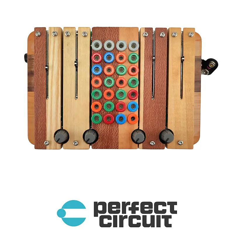 Орган Тетракс продолжает линию электронных музыкальных инструментов, основанных на прикосновениях.Он был переработан однажды под названием Тетраззи.У него есть четыре деревянные планки, которые вы нажимаете, чтобы выразить четыре встроенных осциллятора.Каждый осциллятор имеет свой собственный регулятор точной настройки, встроенный прямо в планку.Также есть два главных регулятора высоты тона и два главных регулятора хаоса.Каждый главный регулятор хаоса позволяет инструменту переходить от чистых пиловидных тонов к «гнезду» шума, постепенно увеличивая модуляцию от одного осциллятора к следующему по кругу.Причина наличия двух регуляторов каждого типа: Тетракс полностью ориентирован на модуляцию тембра, изменяя восходящий и нисходящий склоны треугольных волн отдельно.Поэтому для главной высоты тона и хаоса есть отдельные регуляторы вверх и вниз.В целом, Тетракс предназначен для фанк-басов и сложных тонов, в то время как Сидракс - для приятных мелодий.Конечно, в любой момент доступен шум!