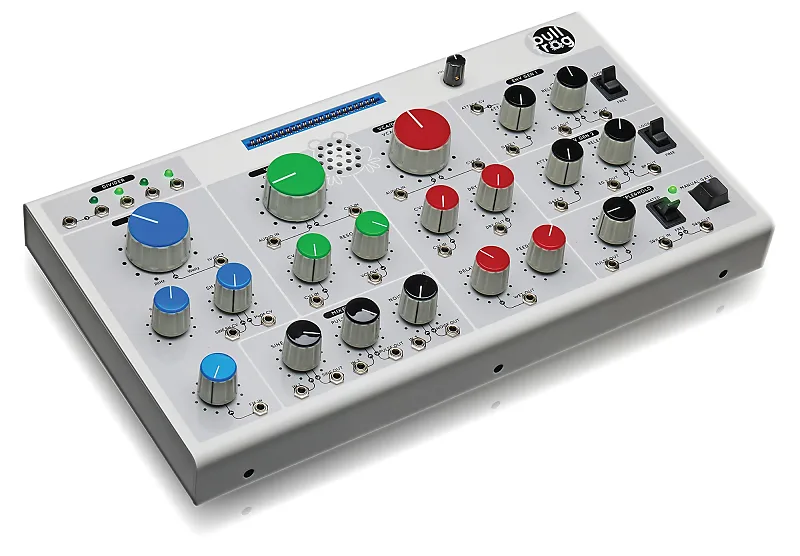 Bullfrog - это классический субтрактивный синтезатор, который состоит из нескольких «модулей» для генерации звука - VCO, генератор шума - и обработки - VCF, VCA/DELAY, а также «модулей», которые генерируют управляющие и модуляционные сигналы для их контроля - генераторы огибающей и SAMPLE & HOLD.Bullfrog не создаст звук сам по себе, если его не подключить - используя патч-корды Eurorack для соединения «модулей» или вставляя голосовые карты, которые создают внутренние соединения между «модулями» определенным образом и добавляют дополнительный функционал, такой как сэмплер/лупер, секвенсор, грувбокс и т.д.Такой подход лучше помогает понять функциональность субтрактивного синтезатора и принципы звукового дизайна с помощью подобных инструментов.