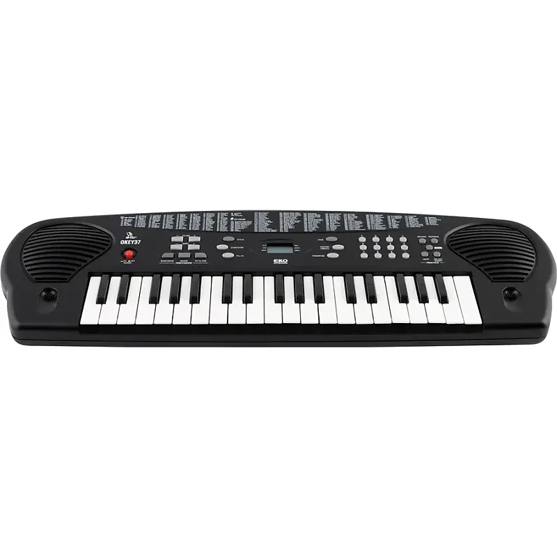 Okey 37 очень прост в использовании благодаря интуитивной панели с множеством команд и LCD-дисплею, который сопровождает и указывает каждую операцию: выбор звуков или стилей, регулировку скорости темпа или уровней громкости.
