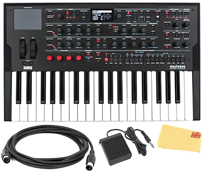 Набор Korg Modwave Wavetable Synthesizer с педалью сустейна, MIDI-кабелем и тканью для полировки Austin Bazaar