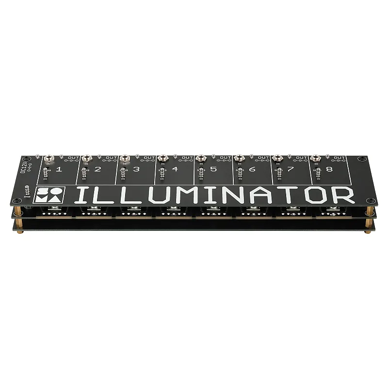 ILLUMINATOR - это восьмиканальный конвертер, который превращает Eurorack и аналоговые CV-сигналы в напряжение, управляющее светодиодами и светодиодными лентами, создавая уникальное световое шоу в синхронизации с вашим живым выступлением.CV-сигналы от вашего музыкального оборудования уже пульсируют в ритме различных частей и звуков вашего трека, поэтому программирование или оператор света не требуется.