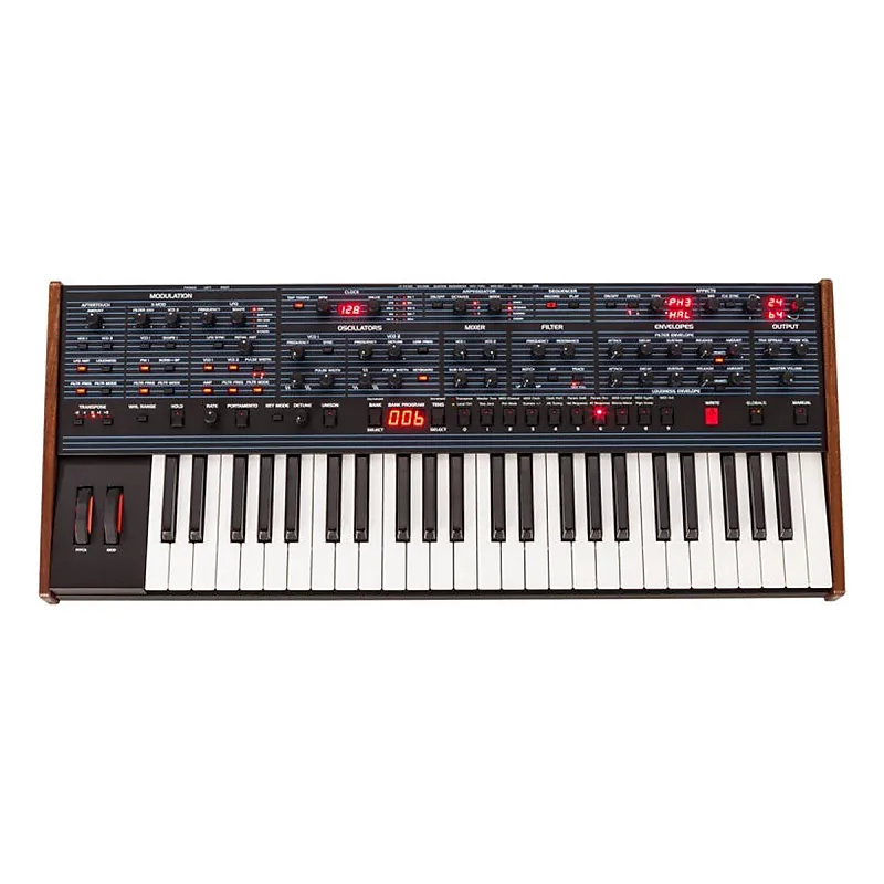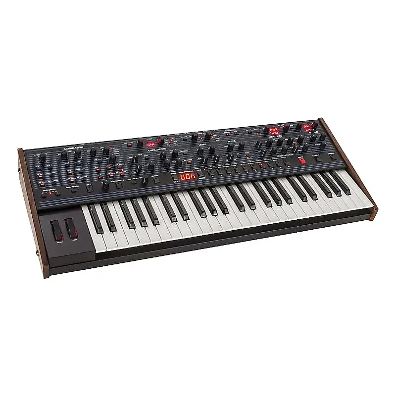 OB-6 - это уникальное сотрудничество двух самых влиятельных дизайнеров в истории полифонических синтезаторов, Дэйва Смита и Тома Оберхейма.OB-6 обеспечивает классический яркий звук Тома Оберхейма - с настоящими осцилляторами с управлением по напряжению, двухполюсным фильтром и усилителями - и добавляет современные улучшения, такие как эффекты студийного качества, полифонический шаговый секвенсор, арпеджиатор и многое другое.Ни один другой современный аналоговый полифонический синтезатор не может похвастаться таким происхождением или таким массивным, в лицо звучащим звуковым характером.