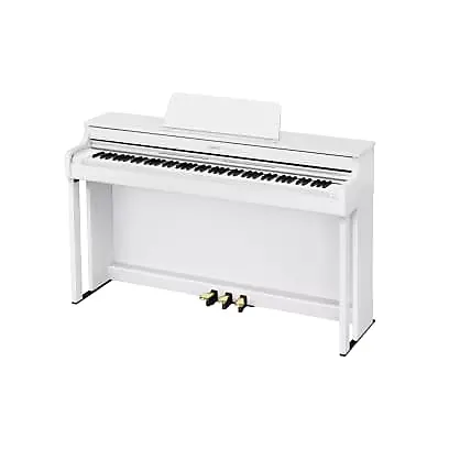Casio Celviano AP-300WE предлагает аутентичное звучание и ощущение фортепиано в изящно отделанном белом корпусе с золотой отделкой и мягко закрывающейся раздвижной крышкой клавиш.Это элегантное цифровое пианино обеспечивает выразительную музыкальность с современными удобствами - идеально подходит для утонченных домашних интерьеров, студий и учебных помещений.