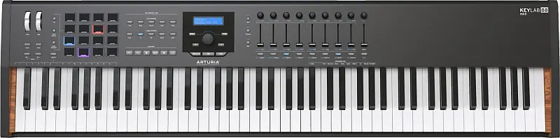 USB-контроллер с 88 взвешенными клавишами - черная версия ограниченной серииСерия KeyLab MkII от Arturia теперь предлагает новую версию и для флагманской модели с 88 клавишами.Благодаря клавиатуре высшего класса Fatar и всем расширенным функциям серии MkII, она становится уникальным и ценным MIDI-контроллером для любых задач в студии и на сцене.В этой специальной ограниченной черной версии мастер-клавиатура французского производителя приобретает еще более стильный и эксклюзивный вид.Помимо богатого программного обеспечения, KeyLab 88 MkII оснащена расширенным центром управления с энкодерами, фейдерами, контроллерами DAW и центральным большим регулятором, а также чувствительными к скорости и давлению RGB-падами.KeyLab 88 MkII - это профессиональная MIDI-клавиатура с 88 клавишами, специально разработанная для музыканта.С широким набором элементов управления, современным дизайном и интерфейсом очень интуитивно понятный интерфейс.KeyLab 88 MkII - это 88-клавишный MIDI-контроллер, находящийся на вершине своей категории.Но вместе с этим впечатляющим набором характеристик, KeyLab 88 MkII также включает богатый комплект программного обеспечения с Piano V, Wurli V, VOX Continental V, Ableton Live Lite и Analog Lab, который предлагает 6000 звуков лучших эмуляций легендарных синтезаторов Arturia.Таким образом, KeyLab 88 MkII является полноценным «гибридным синтезатором» и предлагает идеальное сочетание непосредственности аппаратного синтезатора и гибкости программного решения.KeyLab 88 MkII полностью настроен для работы с программным обеспечением Analog Lab и позволяет сразу получить глубокий контроль над каждым звуком.KeyLab 88 MkII основан на высококачественной клавиатуре Fatar с «hammer-action», идеально подходящей для точной реакции на нажатие.Также интегрирован контроль транспортировки для работы с любимыми DAW, вместе с большим количеством потенциометры, слайдеры и назначаемые кнопки для полного управления плагинами и рабочей станцией.Кроме того, есть 16 драм-пэдов, чувствительных к нажатию и скорости на самом высоком уровне.Клавиатура Fatar вместе с классическим aftertouch включает все основные характеристики, которые сделали итальянский бренд известным во всем мире, а именно Hammer Action, Fast Connection System, Support Block System.Благодаря специальным исследованиям в области кинетической силы и разработке новых материалов, клавиатура Fatar обеспечивает большую прочность клавиши и более точный отклик на нажатие.Музыкант, естественно, получает максимальную выгоду, имея лучший контроль над динамикой инструмента и действием, применяемым к клавише и молотику .