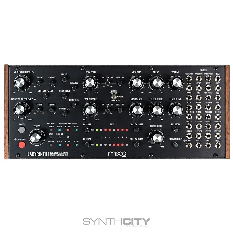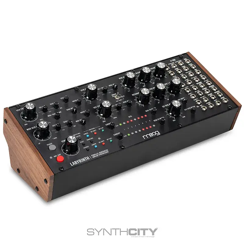 - Осцилляторы синусоидальной формы, кольцевые модуляторы, сквозная FM и насыщающие микшеры придают Labyrinth нетрадиционный, но классический звук Moog.