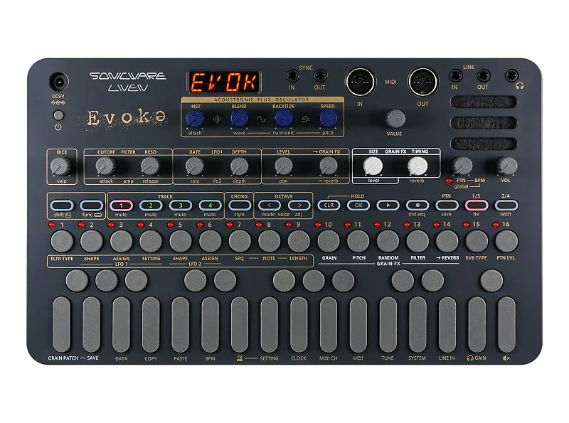 Evoke предоставляет фирменный 4-дорожечный секвенсор LIVEN - известный записью как ваших выступлений, так и любых изменений звуковых параметров, позволяя создавать широкий спектр композиций.