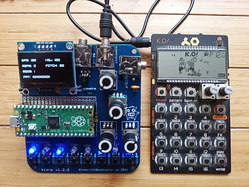 Scarp - это открытая платформа для создания музыки с использованием Raspberry Pi PICO.Это готовая версия.Она оснащена евклидическим вращающимся ритмовым бит-боксом в различных вариантах.От 808 перкуссии до драм-н-бейс.Файлы прошивки можно устанавливать перетаскиванием.Обновление на май 2025 года.Я портировал Mutable Instruments Braids Metasynth на Scarp.Теперь у вас может быть синтезатор MI в дороге :) poetaster.org/scarp/scarp-braids/