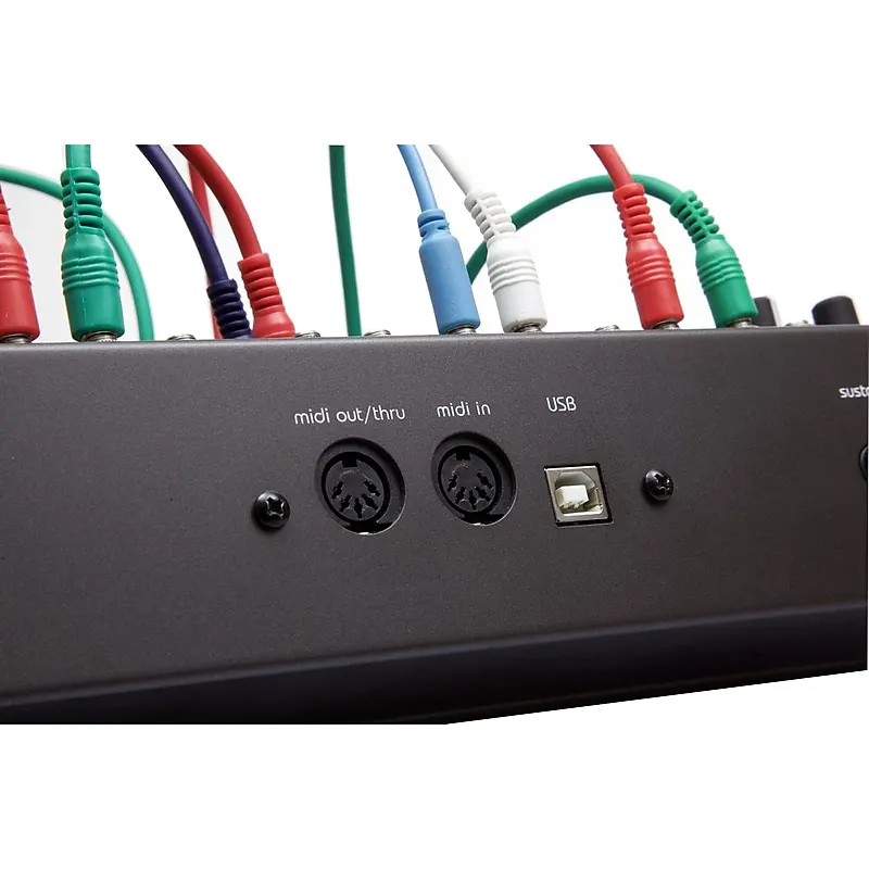 - Вход для педали сустейна управляет MIDI и гейтами