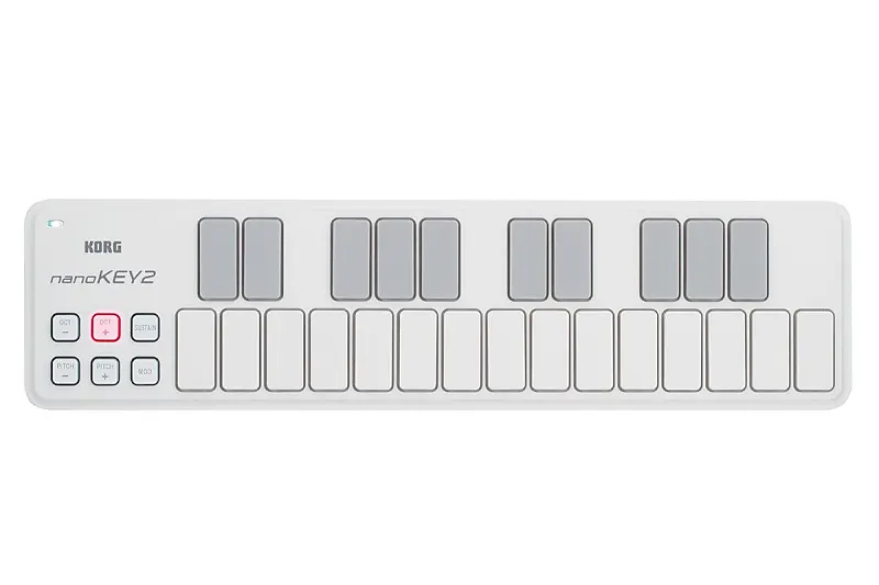 Korg nanoKey 2 в белом цветеKorg nanoKEY2 обладает современным и инновационным дизайном, который выделяет его среди других.Его функции сочетают в себе непревзойденное "ощущение" профессиональных MIDI-клавиатур Korg с элегантной "тонкостью" современных компьютерных клавиатур, обеспечивая непревзойденную отзывчивость клавиш в своем классе и размере.Пространство между клавишами и их щедрый размер минимизируют вероятность ошибок.Отклики на прикосновение и скорость нажатия тщательно откалиброваны компанией Korg, производителем с проверенной репутацией и опытом, что гарантирует точную передачу вашего выразительного исполнения в программное обеспечение.