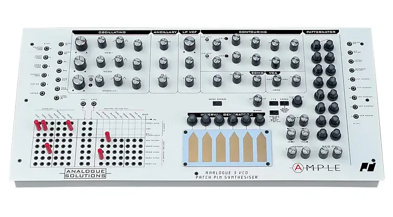 Аналоговый - в прямом смысле аналоговый.За исключением MIDI-чипа , все остальное полностью аналоговое с использованием настоящих транзисторов и операционных усилителей.Здесь нет стабилизированных и квантизированных CPU схем, нет DCO, нет цифровых LFO и цифровых EG, как это встречается в других так называемых аналоговых синтезаторах.Схемотехника основана на разработках середины 1970-х годов.Таким образом, Ample обладает подлинным старым звуком.