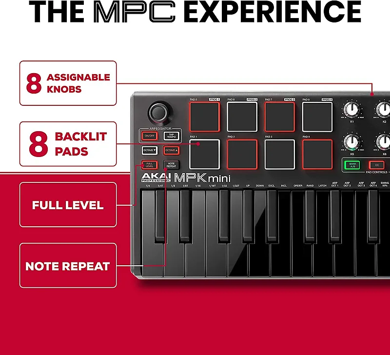 Переносите музыку в любое место, не теряя контроля.Ограниченная серия Akai Professional MPK Mini MKII LE Black - это ультракомпактный контроллер-клавиатура, созданный для путешествующих музыкантов и настольных продюсеров, теперь доступная в эффектном полностью черном исполнении.