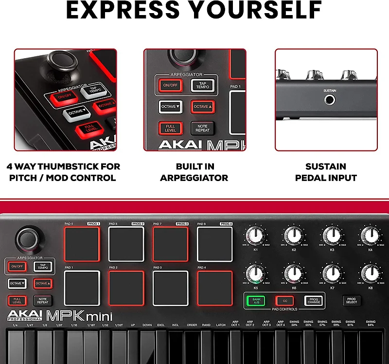 Какими бы ни были ваши потребности, MPK Mini MKII LE Black предоставляет продюсерам необходимый контроль для захвата идеи в вашей голове в любой момент вдохновения; специальные кнопки Oktava вверх и вниз увеличивают диапазон клавиатуры до полной мелодической амплитуды - идеально для исполнения басовых линий, аккордов, мелодий и не только; удобно расположенный вход для педали сустейна обеспечивает расширенный контроль для выразительных и погружающих выступлений; наконец, встроенный арпеджиатор с регулируемым разрешением, диапазоном и режимами позволяет просто, удобно и быстро создавать сложные мелодические линии.