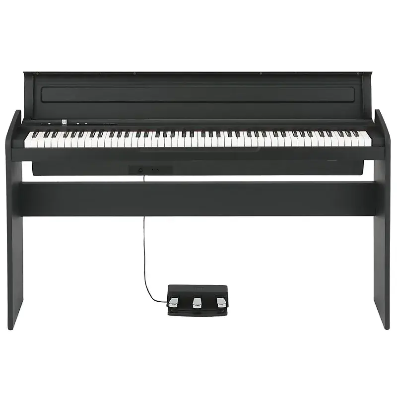 KORG LP-180 BK Студийное цифровое пианино выполнено с большой тщательностью и качеством, превышающим его категорию.Тонкий корпус, профессиональный уровень звука, крышка клавиатуры, нотный пюпитр и три педали.С этим инструментом KORG переопределяет стандарт эталона.в категории цифровых пианино.