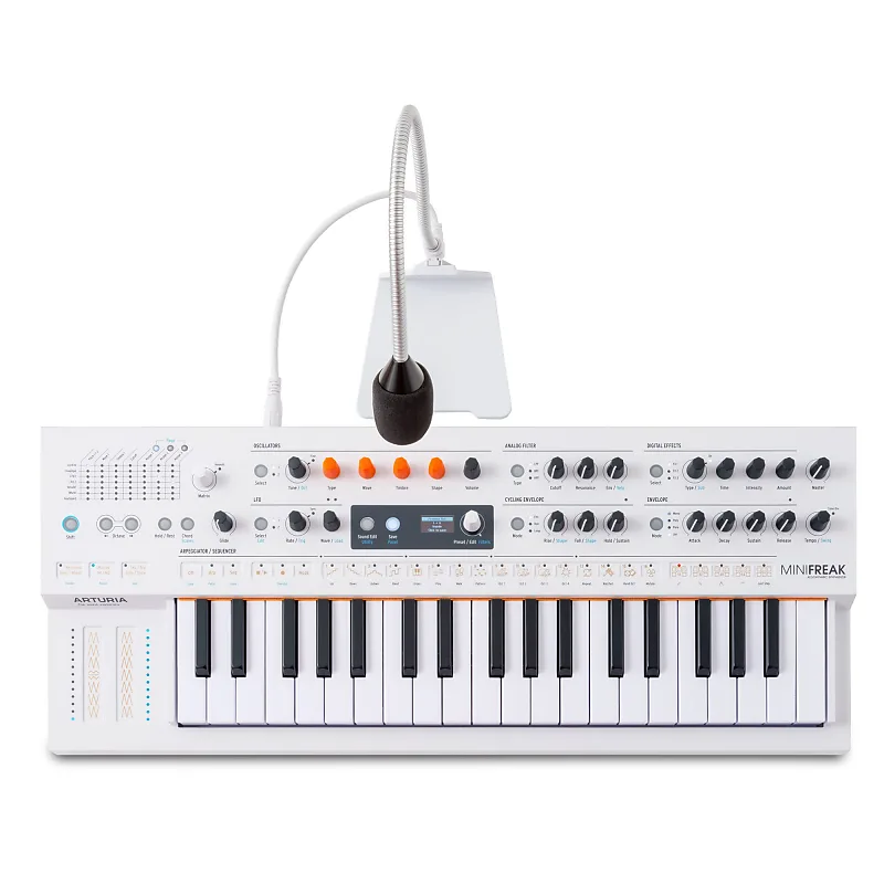 MiniFreak Vocoder - это специальное издание смелого полифонического гибридного синтезатора.Те же двойные цифровые движки, аналоговые фильтры, возможности модуляции и секвенирования, теперь с вокодером и микрофоном на гибкой стойке.Проявите креативность с вокалом или внешним сигналом - от ростов разговорного бокса до спектральных дронов.