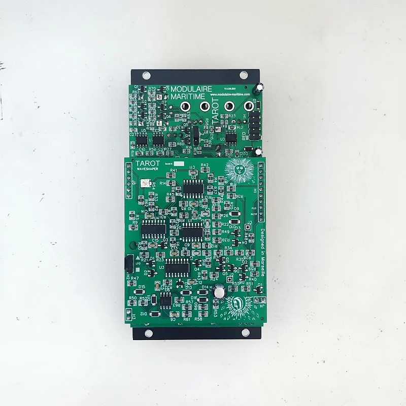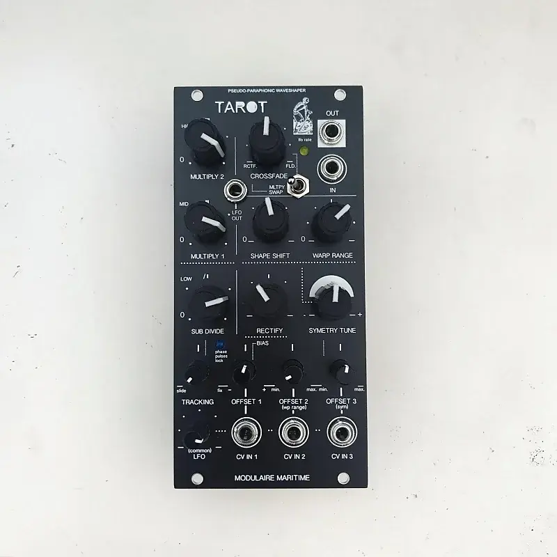 Модуль Modulaire Maritime Tarot - это модуль волнообразования с управлением напряжением, использующий различные техники для получения сложных форм волн и многослойного звучания: частотный синтезатор, который, помимо создания умножений/делений частоты, выполняет демодуляцию, в результате чего возникает эффект FM-глиссандо, комбинируемый с отдельными этапами волнового складывания и выпрямления - это позволяет Tarot создавать множество новых тембров за счет появления новых гармоник.Их сдвиг вызван и анимирован смещениями, управляемыми с CV-входов.Встроенный LFO обеспечивает синхронизированное движение, действующее как фазер или, при установке на более высокие скорости, как хорус , что может дать мощные синтезаторные лиды, падсы или дроны .В противном случае можно искать резкие металлические тона для создания индустриальных звуков.звуки и не только.