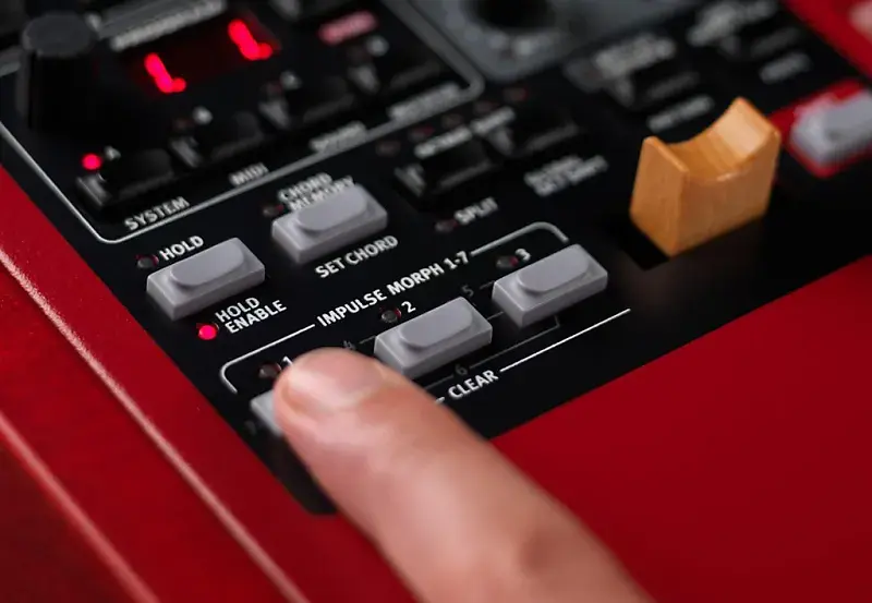 Назначить Impulse Morph просто - просто удерживайте кнопку Impulse Morph и поворачивайте желаемую ручку до нужного значения!Почти все параметры могут управляться с помощью Impulse Morph, а светодиоды показывают, какие параметры были изменены.Нажимая различные комбинации из 3 кнопок Impulse Morph, доступно до 7 уникальных комбинаций для каждого слота.