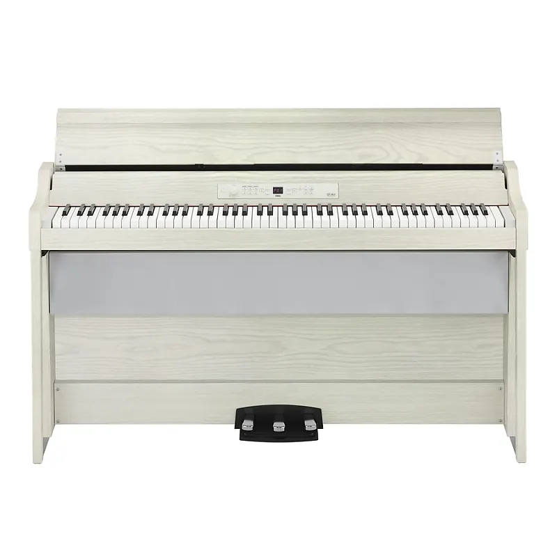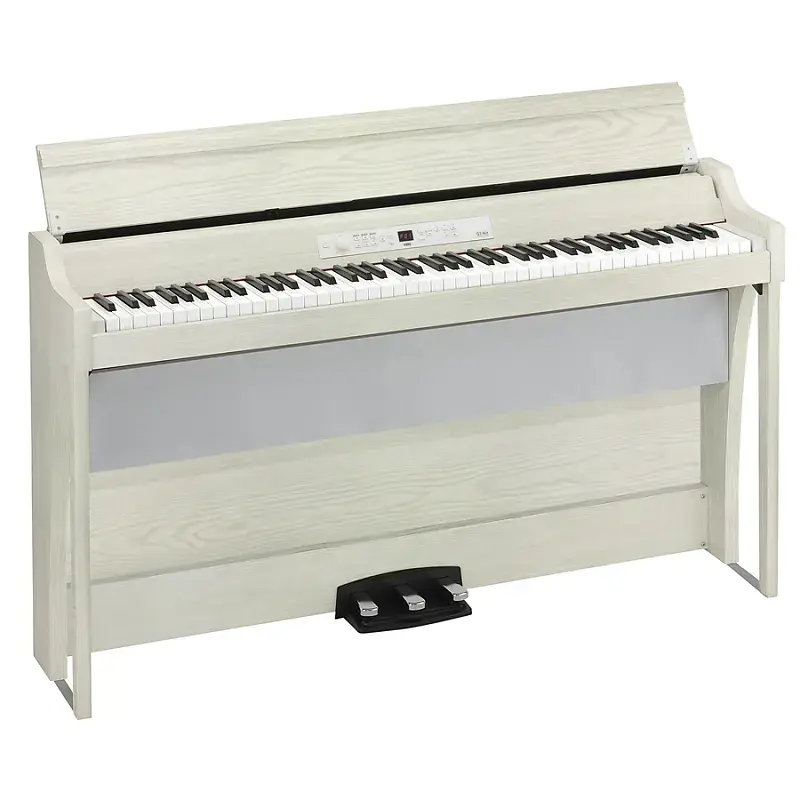 KORG G1B-AIR WA Белая Ясень - это студийное цифровое пианино с известной клавиатурой на 88 клавиш RH3 , с градуированной взвеской молотков, 5 динамическими кривыми, генератором Stereo PCM с полифонией на 120 голосов, 3 многослойными концертными роялями высокой реалистичности, 32 звука Split/Layer, с эффектами: реверберация, хорус, яркость, метроном, MIDI рекордер на 2 дорожки, 3 педали с «полупедалью».Современный и элегантный дизайн, встроенная усилительная система 20 x 2 Вт, воспроизведение аудио через Bluetooth, USB-порт, MIDI , разъемы для 2 наушников.