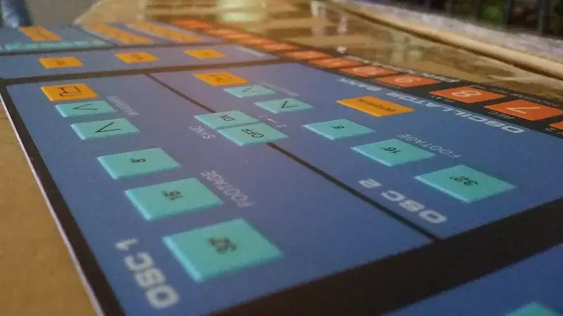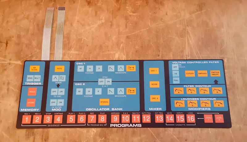 С небольшого расстояния новая панель переключателей Synhouse выглядит как старая добрая панель управления Moog Source, но если приглядеться и посмотреть сбоку, можно увидеть, что ярко окрашенный поликарбонатный наложение было сформовано с 62 приподнятыми прямоугольными зонами, которые скрывают 62 настоящих механических переключателя с купольным механизмом внутри.Механизмы переключателей наиболее похожи на переключатели в устройствах E-mu Emulator II, SP1200 и т.д.Переключатели движутся вверх и вниз примерно на 2 миллиметра.Они обеспечивают положительную тактильную отдачу при нажатии, но звук приглушенный и слабый, низкий «тюк», а не громкий и щелкающий, как переключатель видеомагнитофона.