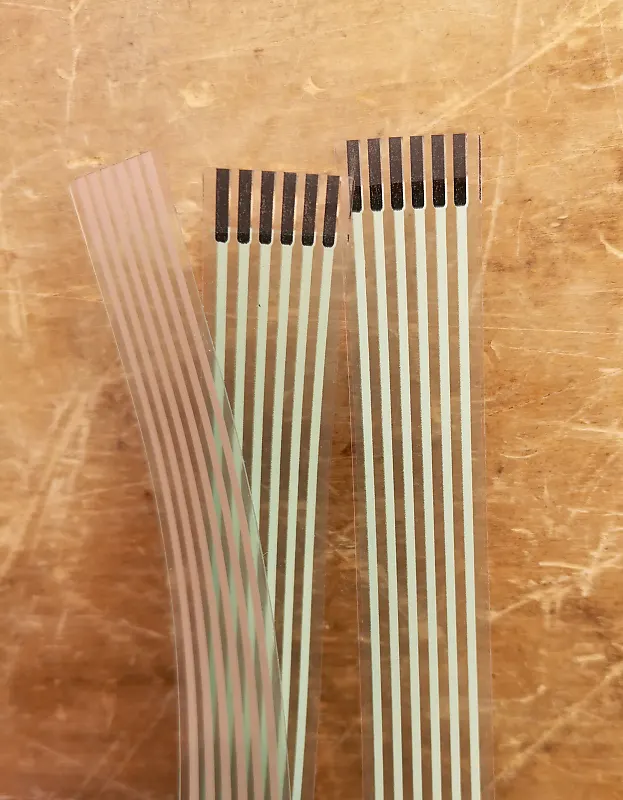 2) Соединение с PCB выходит из строя: наконечники трех гибких контактных ножек, которые подключаются к разъемам на плате Source, теряют проводимость.Иногда помогает очистка химическими средствами или аккуратное протирание ластиком, но это также усугубляет основную проблему: эти наконечники тонкие как бумага, ломкие, и черный углеродистый материал сходит все больше с течением времени, и они как бы «покрываются налетом», и соединение становится непостоянным или перестает работать.Просто посмотрите на них, эти темно-синие ленты с серебристыми линиями на них - это полная ерунда.Затем взгляните на фотографии под номерами 9, 10 и 11 в этом списке.Накладка Synhouse Moog Source изготовлена из значительно более качественных материалов, которые не трескаются так, как эти, а наконечники имеют также лучшую проводимость.