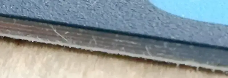 Фотография 5: Старый товар 1981 года и новый 2024 года наложены друг на друга, новый сверху, и виден очень темно-синий потрескавшийся плохой FPC кабель, выходящий из-под задней части .