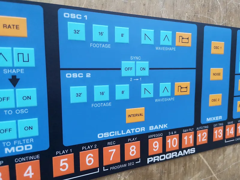 Посмотрите на вашу старую панель Source, где написано "OSC 1".Буквы O и C более квадратные.чем круглым, но замена панели "Moog Source Membrane Panel" имеет O и C, которые практически полностью круглые.Это даже не стиль шрифта, это просто обычные буквы, которые были в их графическом программном обеспечении.