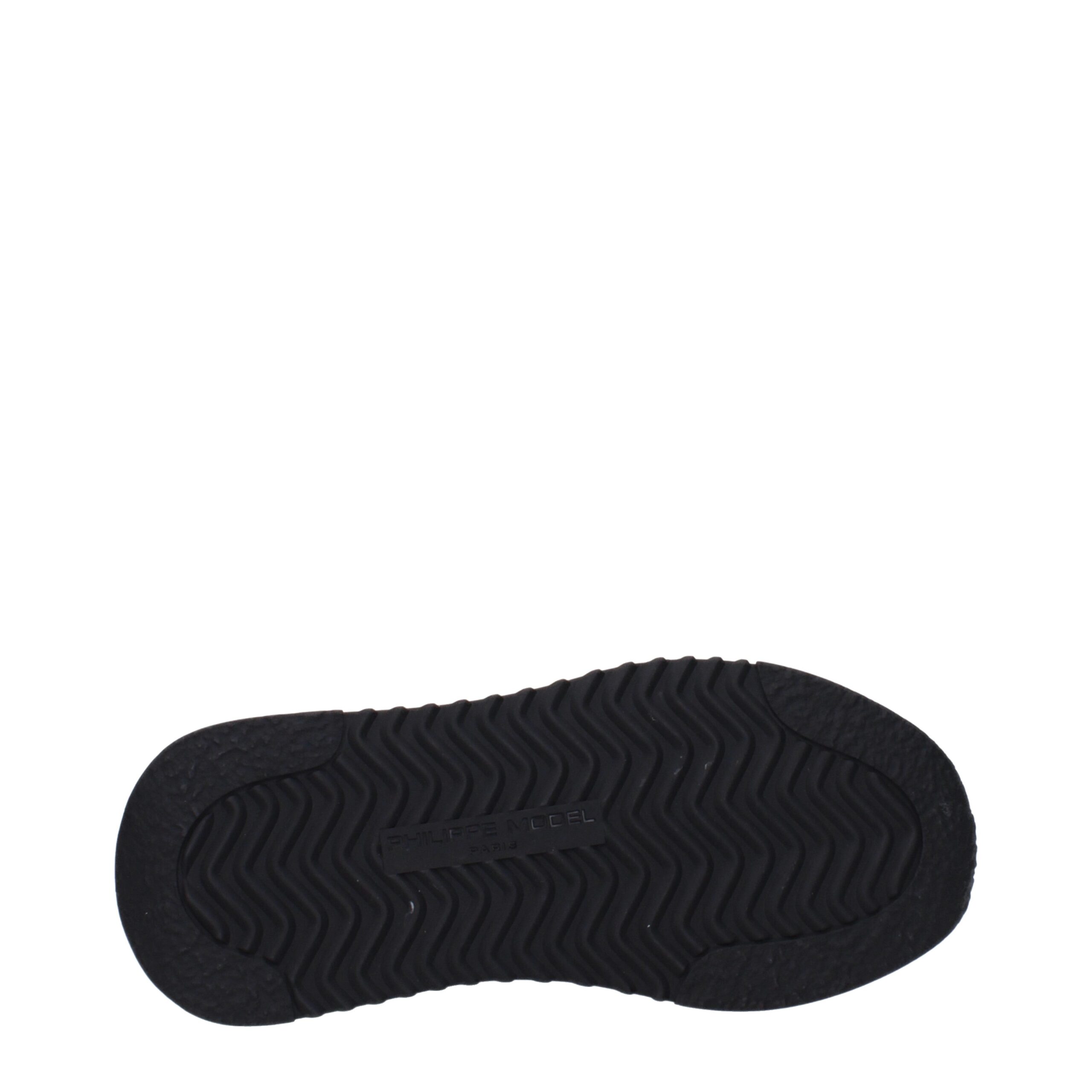 из ткани черного цвета представляет собой кроссовки, разработанные Филиппом Моделом . Они имеют такие особенности, как логотип спереди и сзади, а также винтажный эффект .