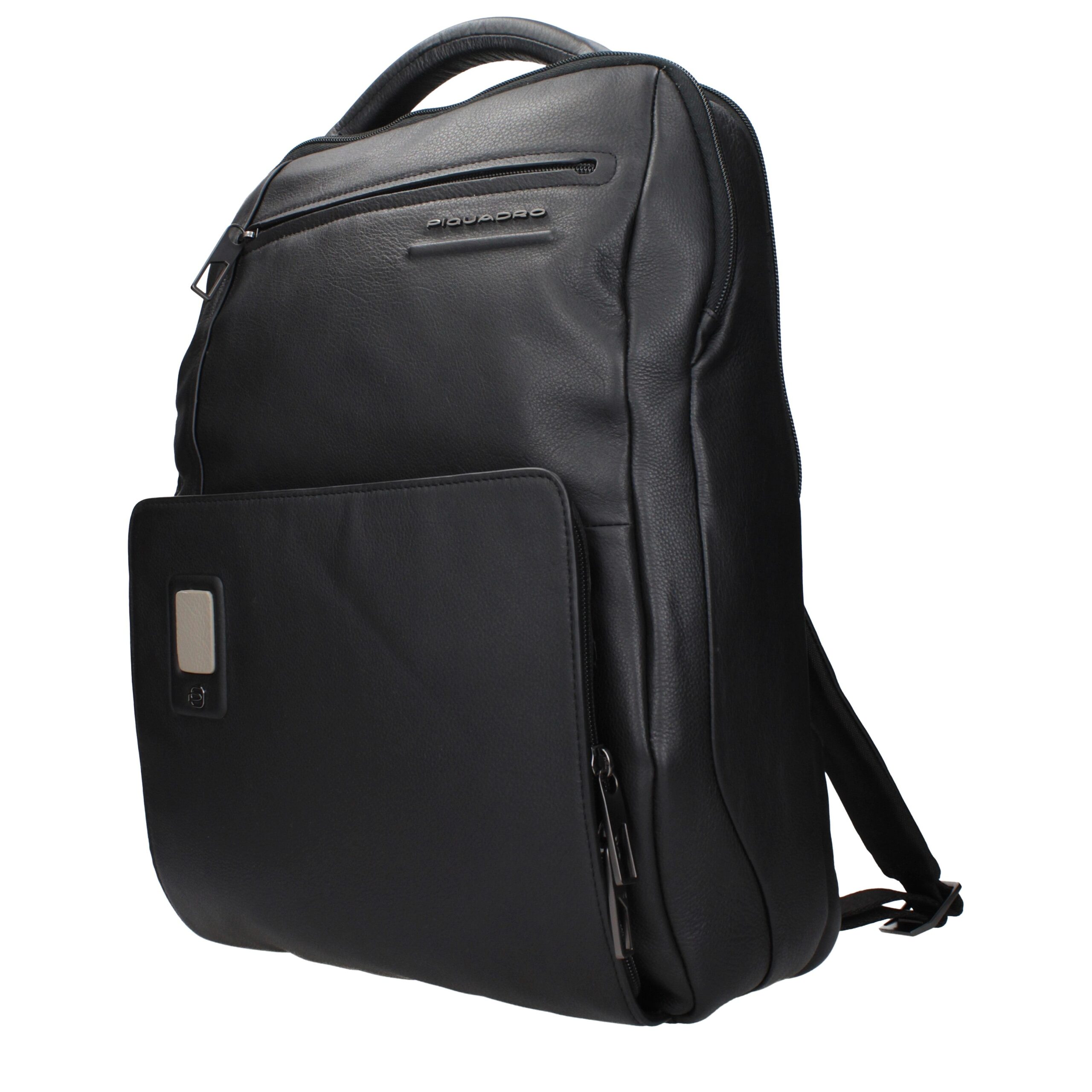 из кожи черного цвета представляет собой рюкзак и поясную сумку, разработанную Piquadro . Оно имеет такие особенности, как логотип спереди, регулируемые ремни сзади, а также чехлы для iPad/ПК .