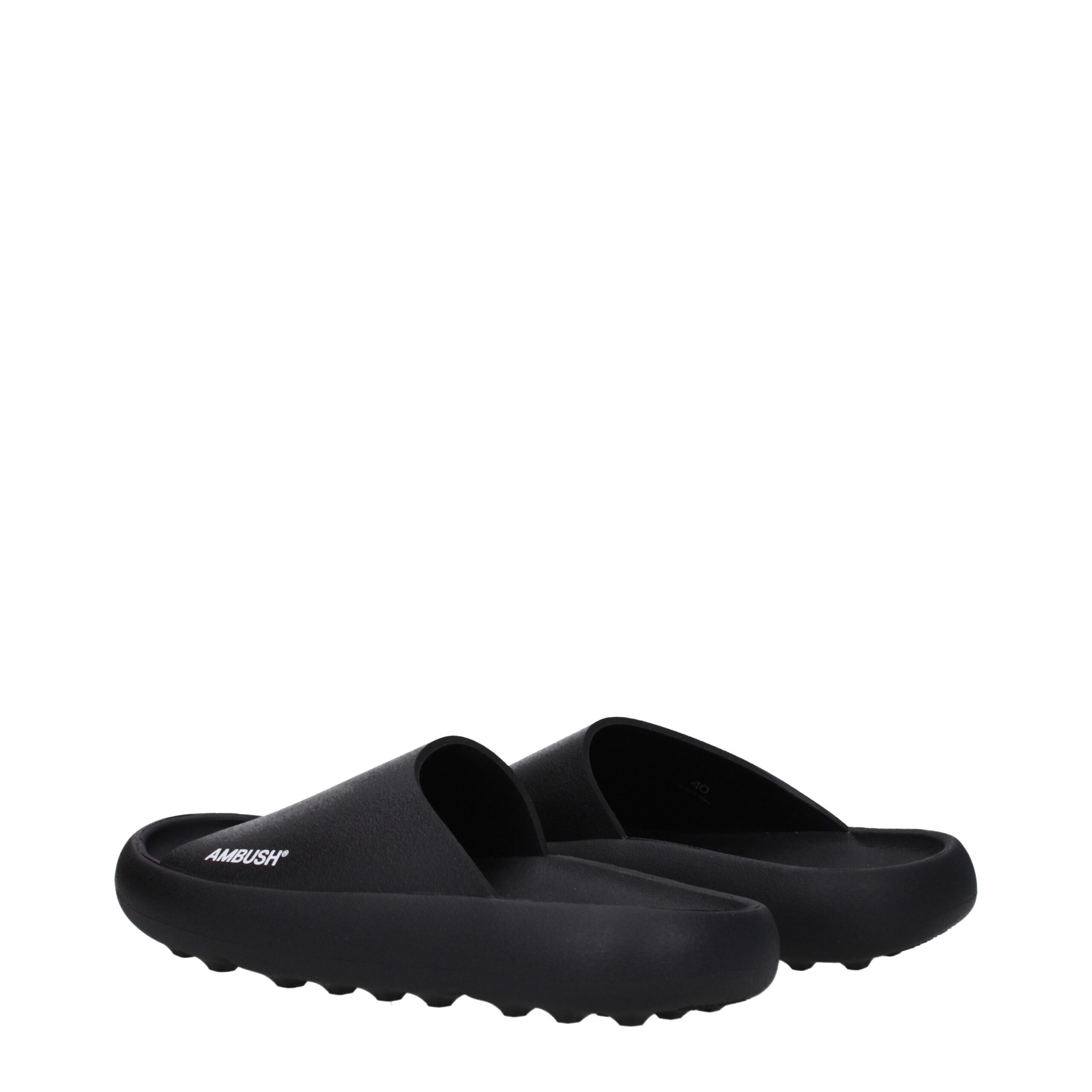 Изделие с MPN BMIC005MAT0011001 и кодом F79692 из резины черного цвета представляет собой тапочки и сабо, разработанные Ambush . На нем также имеется логотип сбоку .