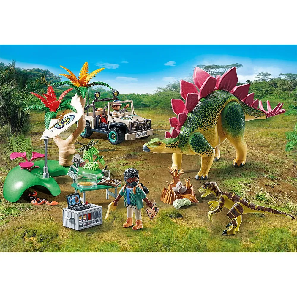 - Детализированный набор игрушек-динозавров с двумя фигурками PLAYMOBIL, стегозавром, дейнойхом, змеей, вездеходом, яйцами динозавров, гнездом, портативными рациями и другими захватывающими аксессуарами для развлечения с динозаврами.