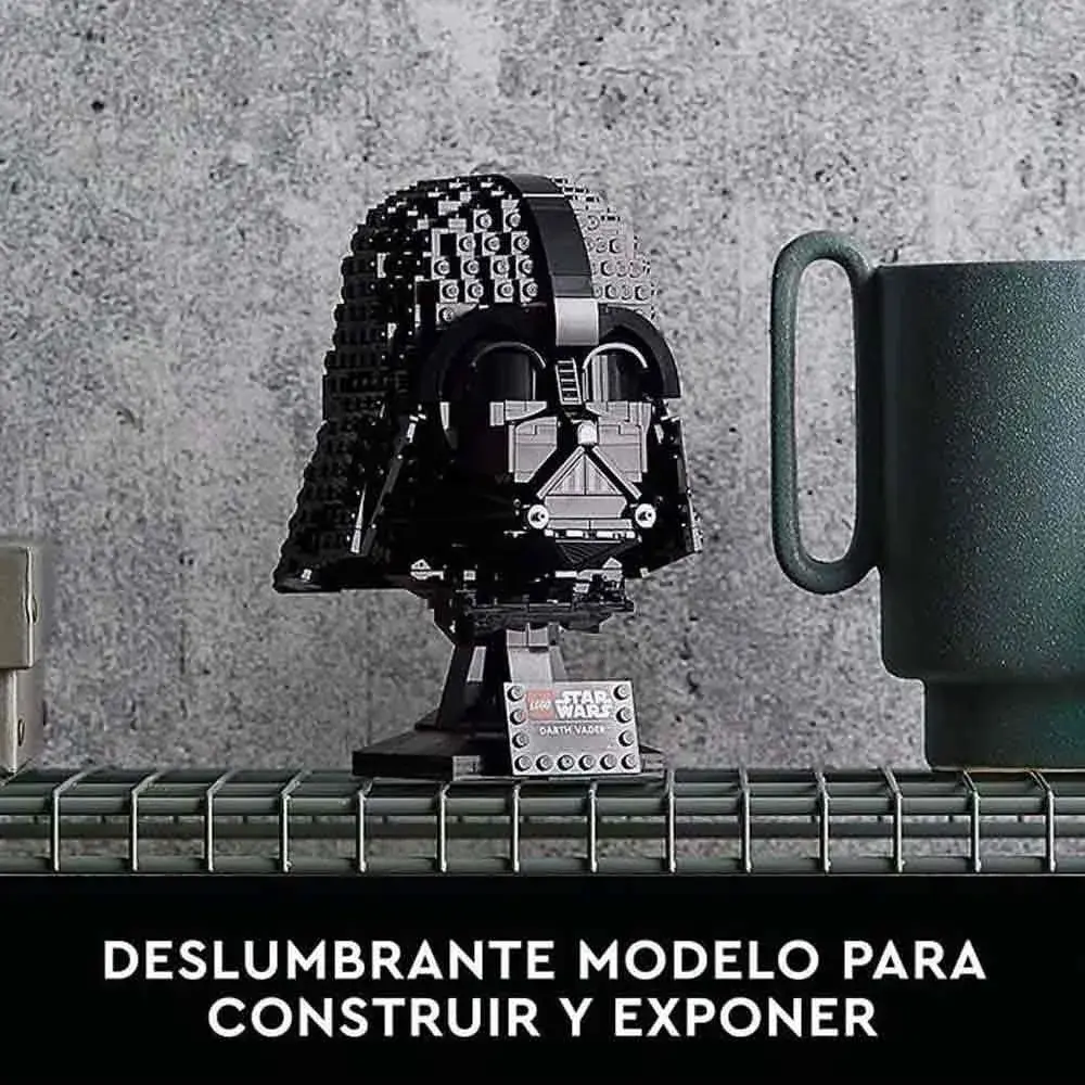 - Культовый дизайн шлема Дарта Вейдера воссоздан в кирпичиках LEGOB, чтобы вызвать воспоминания о классических сценах саги „Звездные войны", а подставка с паспортной табличкой завершает впечатляющее центральное украшение.