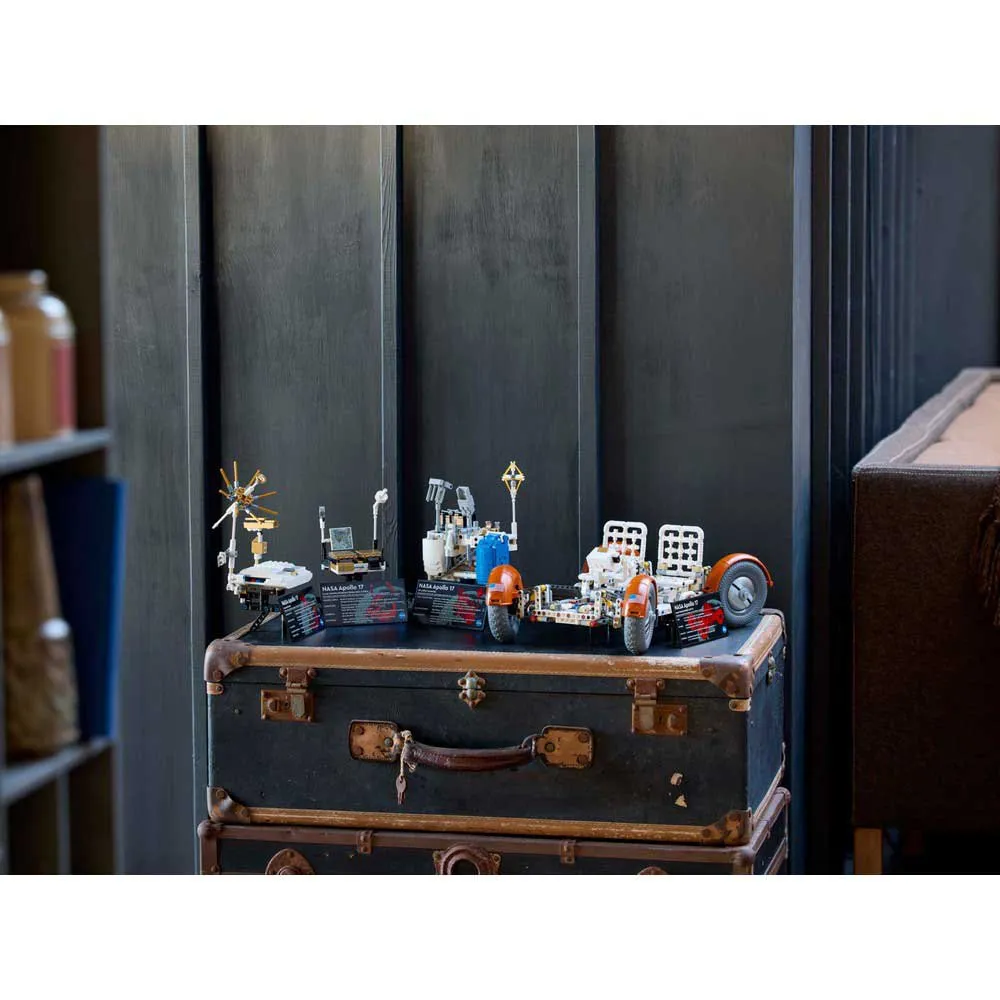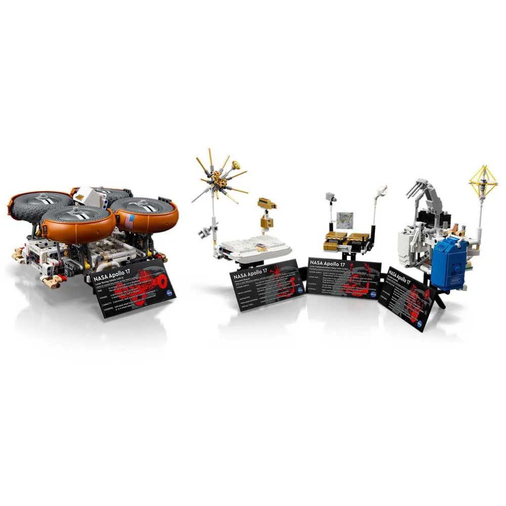 - Сборка для фанатов НАСА- Вспомните миссию "Аполлон-17" с дисплеем, на котором изображен лунный бродячий аппарат, а также 3 подробных приспособления для оборудования, каждое со своей информационной табличкой