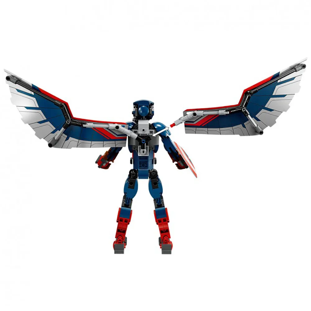 Сборная игрушка Super Hero имеет высоту более 11 дюймов (28 см) и подвижные плечевые, тазобедренные и голеностопные суставы, которые позволяют принимать реалистичные позы, когда дети погружаются в образную ролевую игру. К спине фигурки прикреплены большие крылья из фольги. Крылья можно сгибать, имитируя взмахи крыльев, и легко снимать, когда действие возвращается на землю. Фигурка Капитана Америки несет свой культовый щит, а к спине у него прикреплен сборный беспилотник Redwing, который дети могут легко отсоединить для самостоятельной игры. Для дополнительного цифрового развлечения конструкторы могут увеличивать масштаб, поворачивать наборы в 3D и отслеживать свой прогресс с помощью забавного интуитивно понятного приложения LEGO Builder.