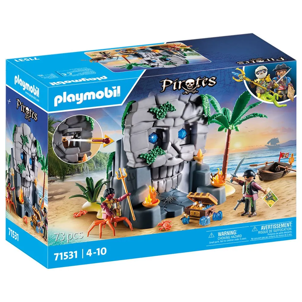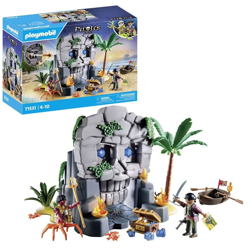 Какой отважный пират отважится отправиться на таинственный остров черепов Playmobil? Говорят, что здесь спрятано ценное сокровище. Однако те, кто хочет заполучить золото и кристаллы, должны сначала пройти мимо молниеносного Краба Поглубже. И это не единственное препятствие, потому что сундук с сокровищами находится в жуткой пещере черепов, защищенной функциональными пушками. Но настоящего пирата ничто не остановит. Игровой мир Pirates от Playmobil с оригинальными персонажами, фантастическими функциями и жуткими монстрами приглашает к захватывающим ролевым приключениям.