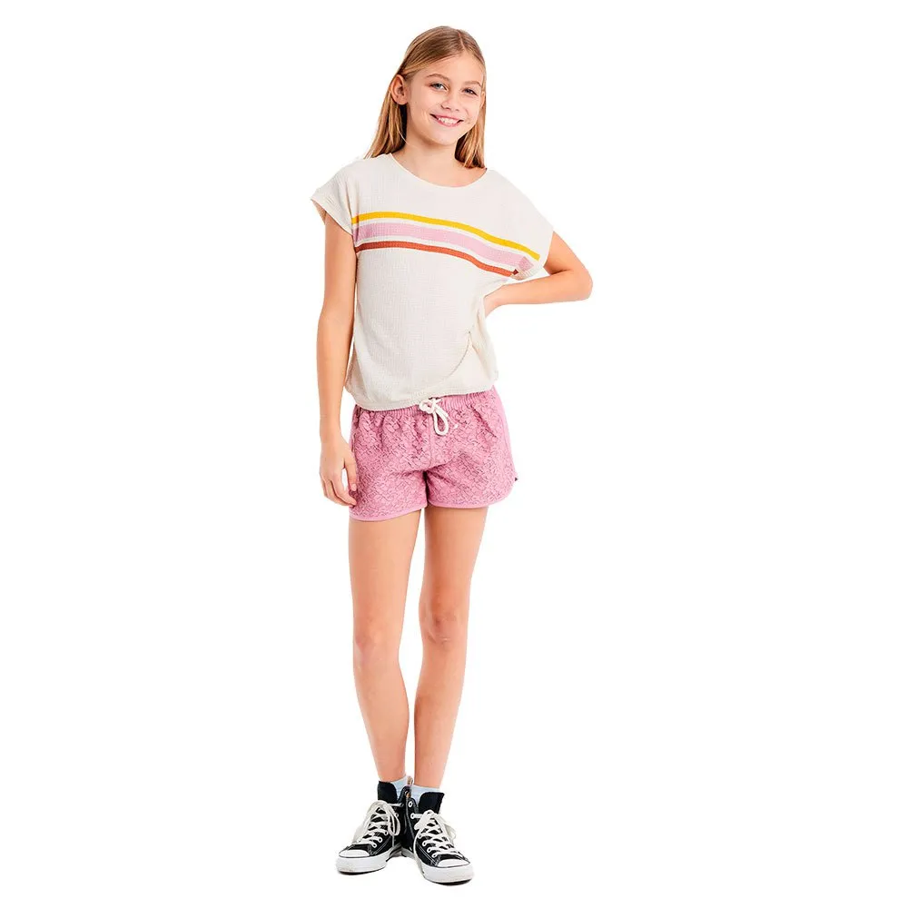 Передняя часть этих шорт состоит из двойного слоя ткани. Верхний слой - красивое кружево. Нижний слой - однотонная ткань. Пояс на резинке и завязывается на витой шнур. Длина этих шорт очень короткая. Также есть небольшой задний карман. Модель PRTDIAN JR от Protest станет потрясающим дополнением к вашему летнему гардеробу.