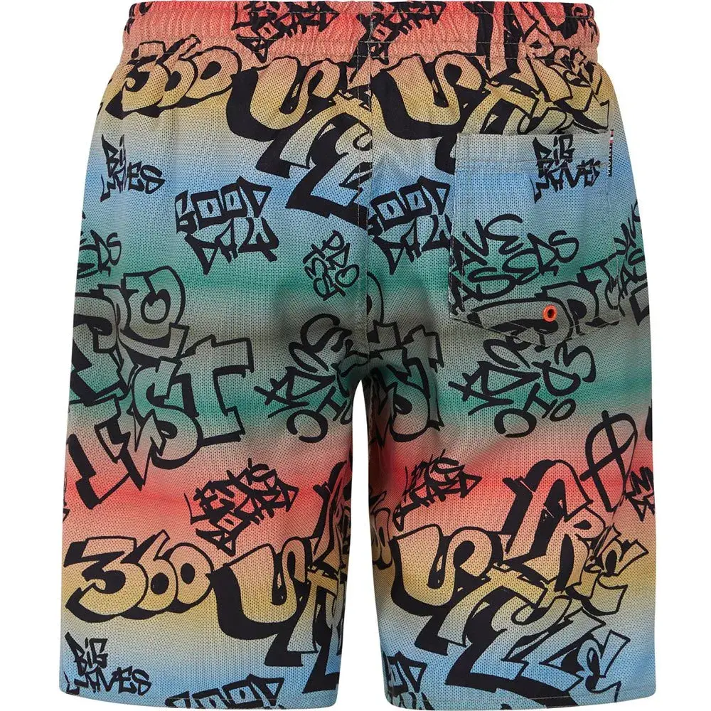 Потрясающий дизайн в стиле граффити с переходом цветов выводит эти пляжные шорты на новый уровень.